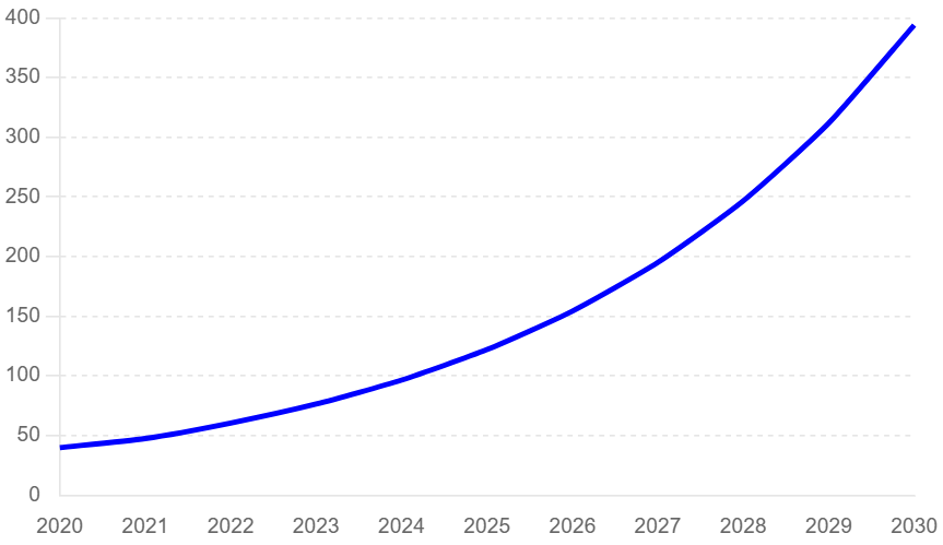 市場価値は2020年の約399億ドルから始まり、2030年には約3940億ドルに達する