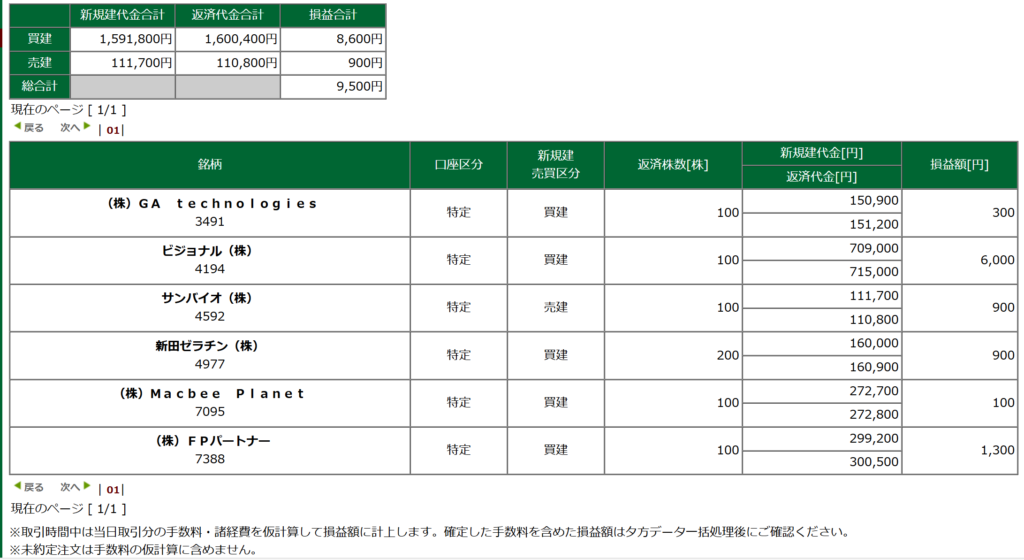 95円台で 1000枚 中 950枚 売って