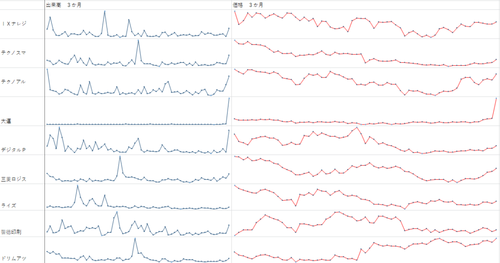 決算だったり 優待だったり 配当落ちだったりで 出来高の推移って