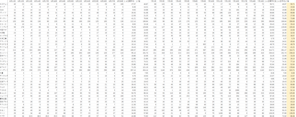 ボラがあって 尚且つ終値も高く 平均値も高い銘柄を とりあえずピックアップ