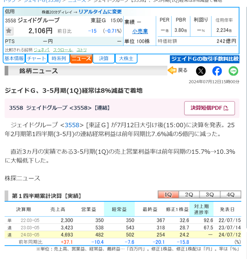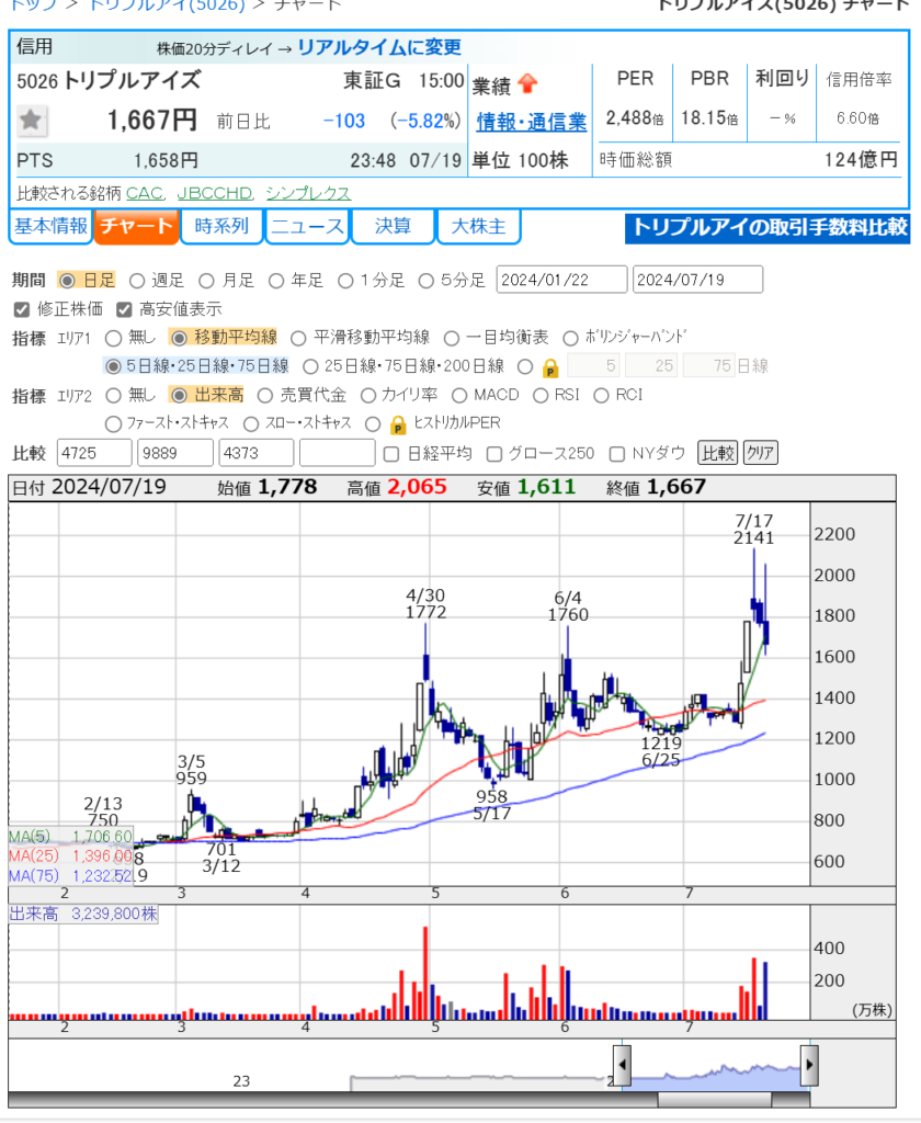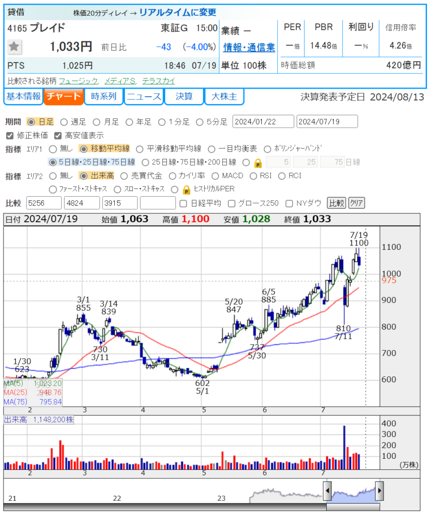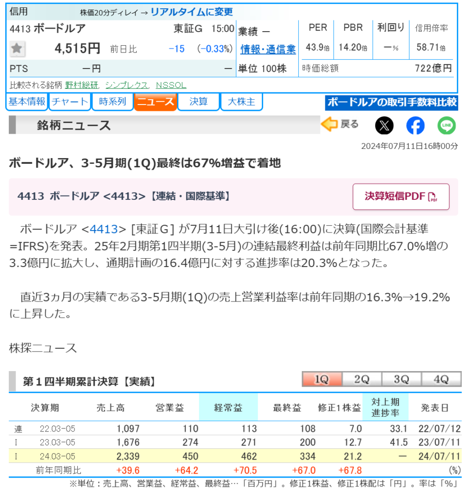 現場からちょい早めに帰って来て ふと株探見たら