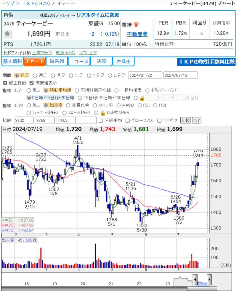 PTSが1500円台 。。。