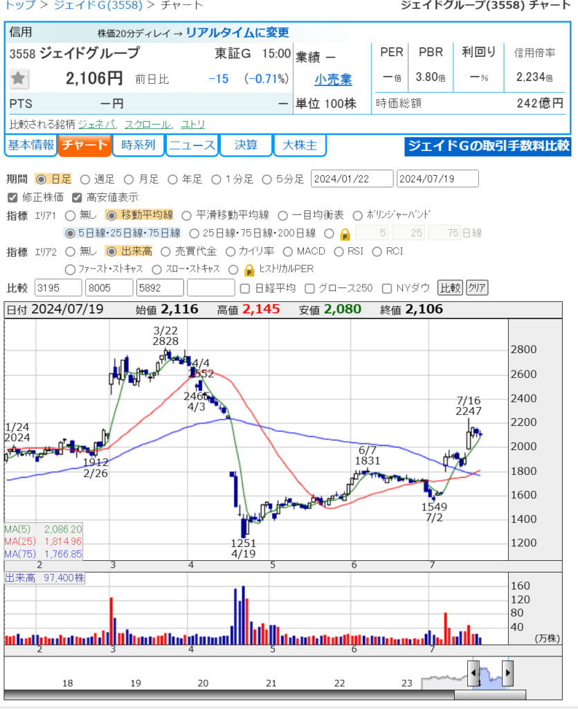 って 感じの銘柄の 俯瞰チャート