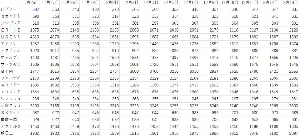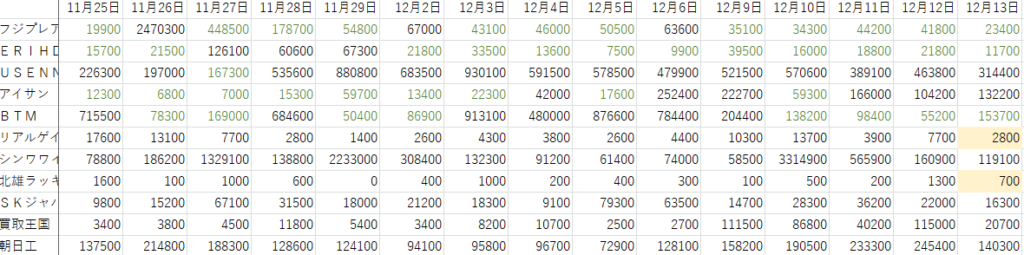 ついでに 仕手っぽい のと 前回 全然回に 被ってるのも 削除