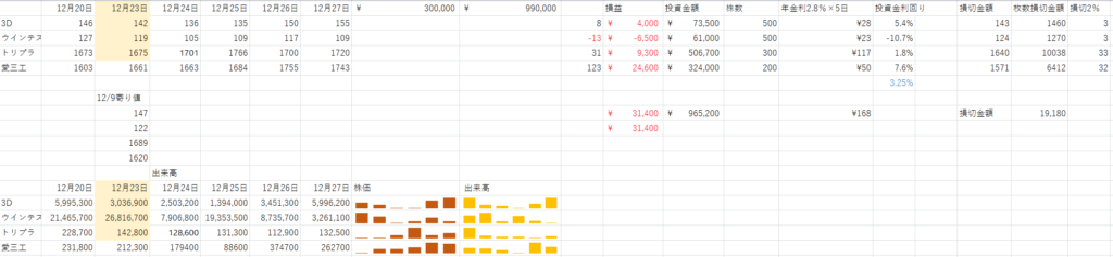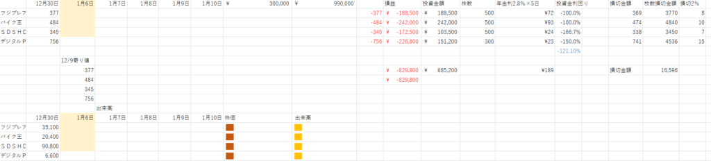 予算を鑑みちゃうと この程度の株数しか入れられなくて