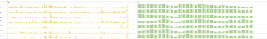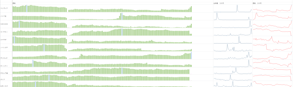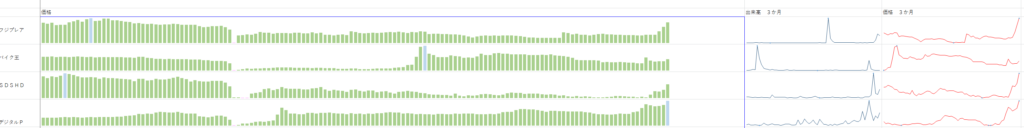 一気に行くけど、 分割で 出来高増加した 銘柄は弾きます