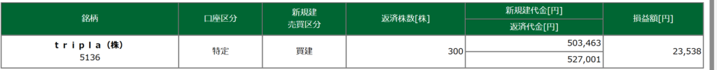 トリプラは一旦目標のとこ 到達して下がったので 売って