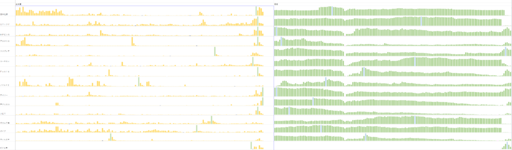 月曜 一気に 上がって行って 一気に 下がって来てた
