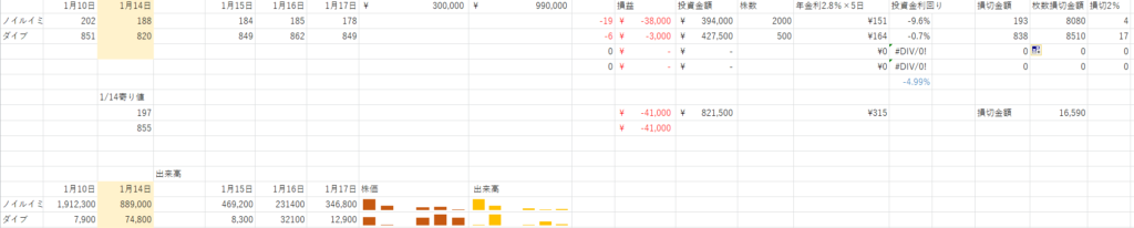 今週は ルールに合致する銘柄が 一つも無かったので 無し
