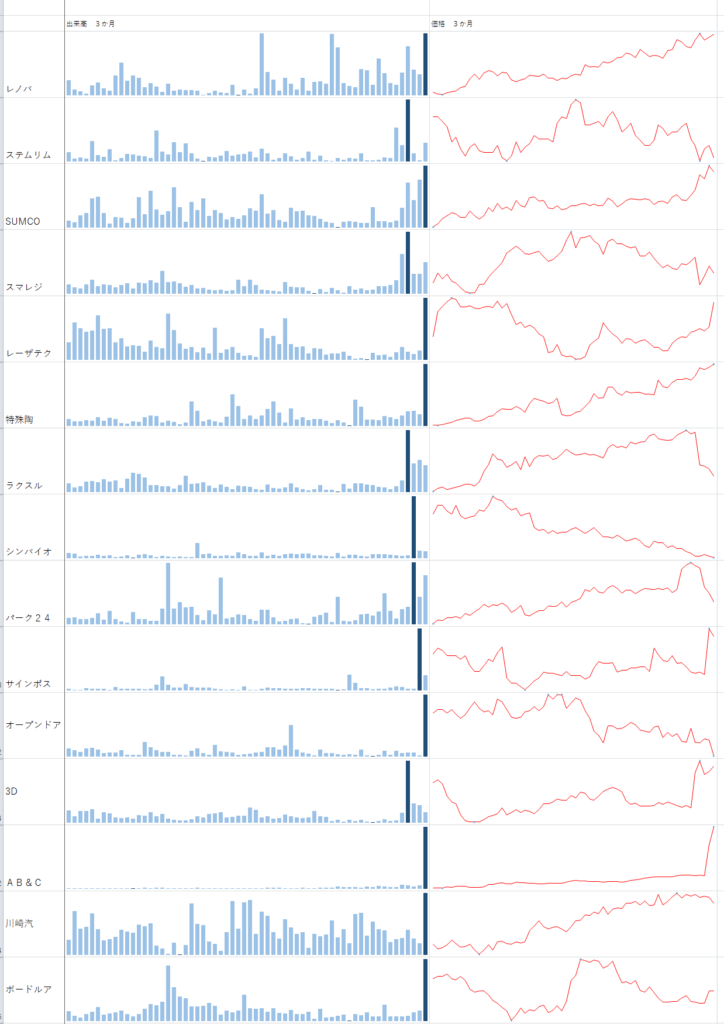 なんか最初の3か月の出来高バイーン銘柄