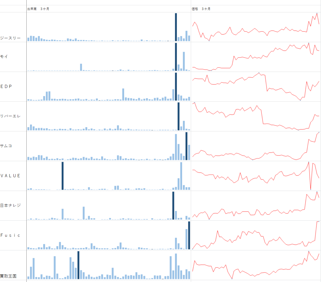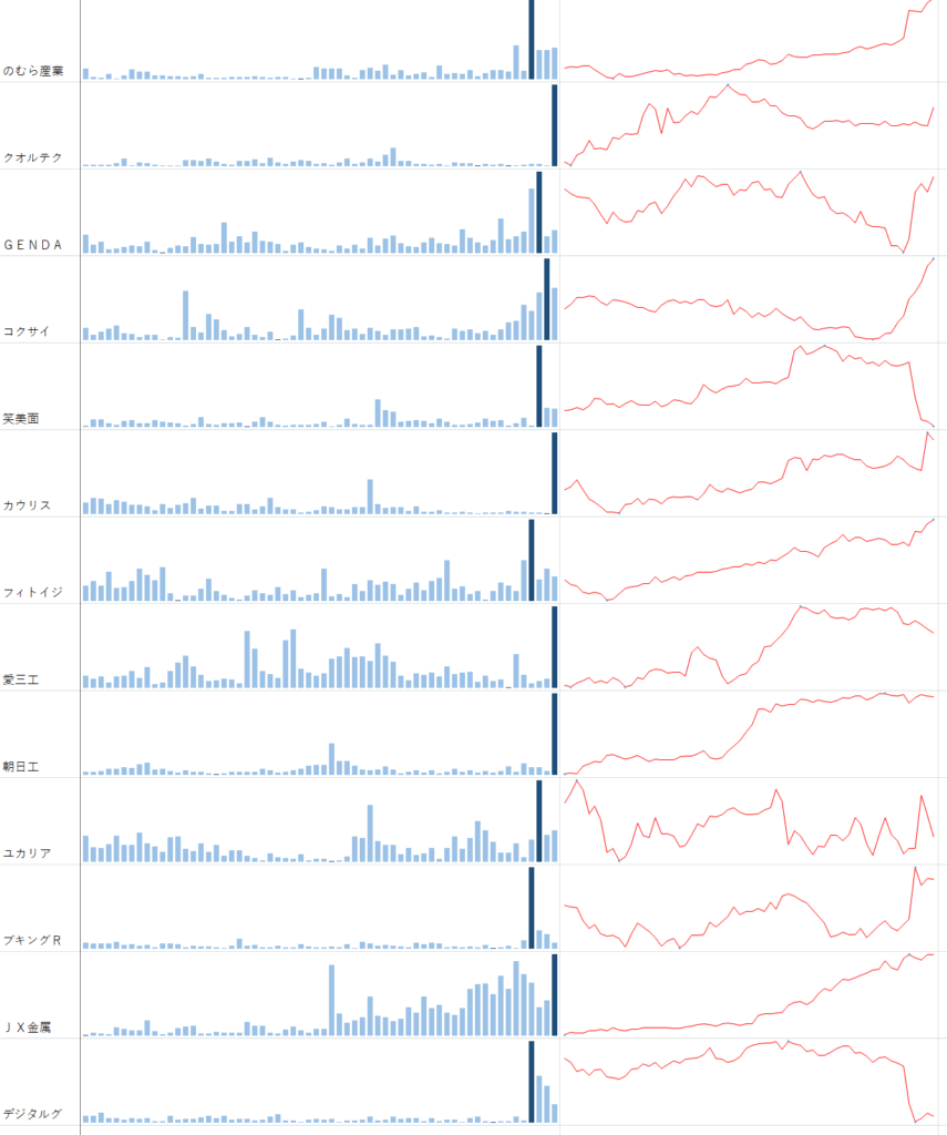 ほとんどが なんだか 仕手株っぽく なってしまってて