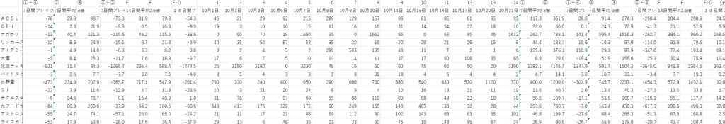 14日間アベレージの ブレイク銘柄は こんな感じ