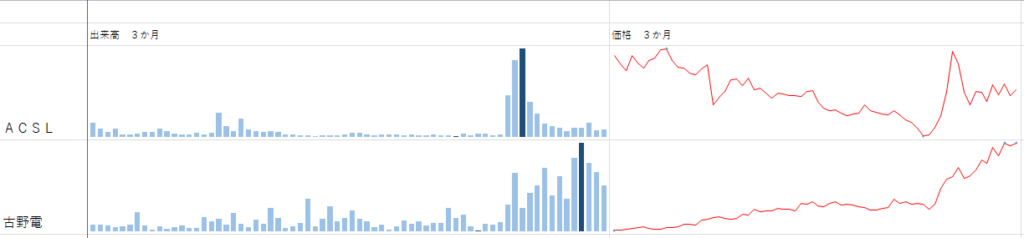 うわ~ こいつ スンゲー出来高も株価の推移も似てる~