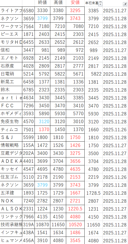 年初来高値更新 銘柄と 年初来高値 めっちゃ近いじゃん銘柄