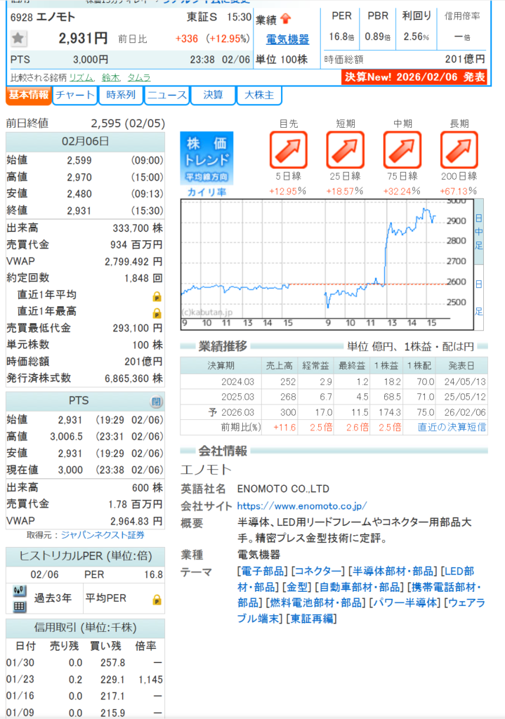 エノモトは 半導体関連だったから あまり見て無かったけど