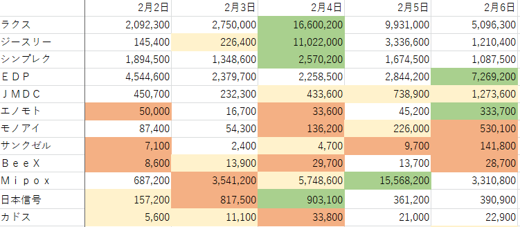 短期間の 俯瞰での出来高バイーン銘柄の方