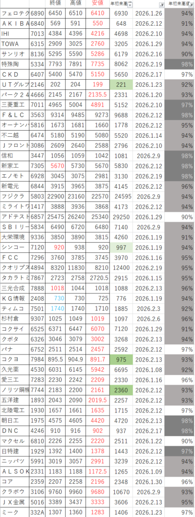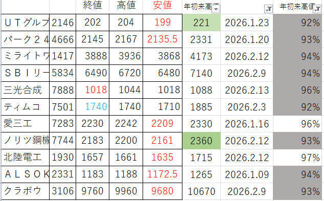 これは ペクの監視銘柄の今年に入って高値更新した銘柄で